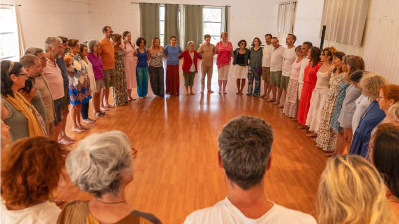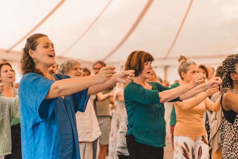 Chants et danses sacrées ouvrent un espace d’expression, de libération et de joie. Le mouvement et la voix permettent de laisser sortir ce qui ne pouvait pas encore se dire avec des mots.